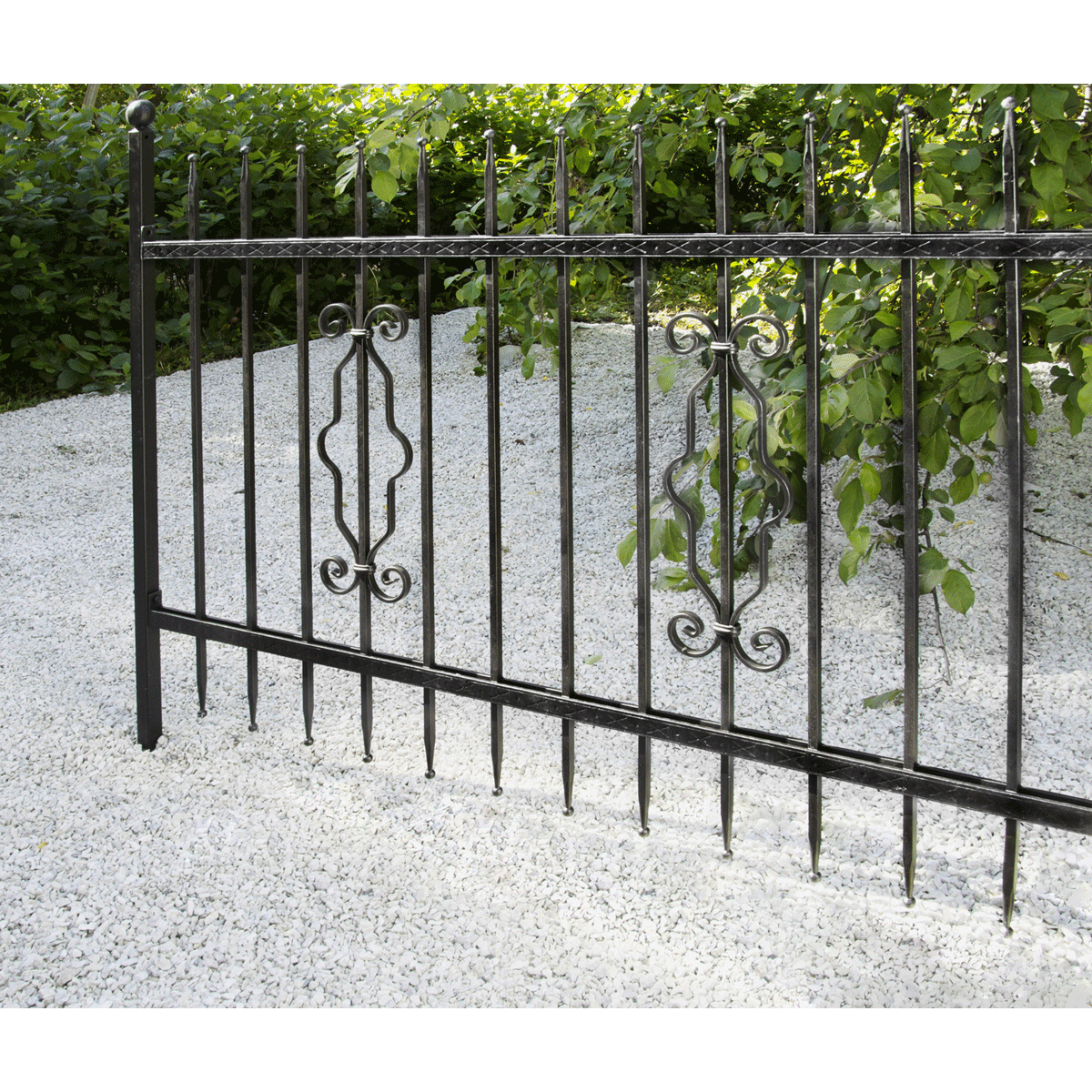 Lisätiedot: Kuvan metalliset aitatolpat on tilattavissa erikseen. Tolppa on koossa 30×30, tolpan päässä on koristepallo ja alaosassa kiinnityslappu. Tolppa voidaan valmistaa myös suorana, jolloin se on mahdollista upottaa valuun. Aitatolppa on mahdollista tilata myös ilman koristepalloa tai jollain muulla koristeella. Kaikki käytettävissä olevat osat löytyvät sivuiltamme kohdasta Takorautaosat.