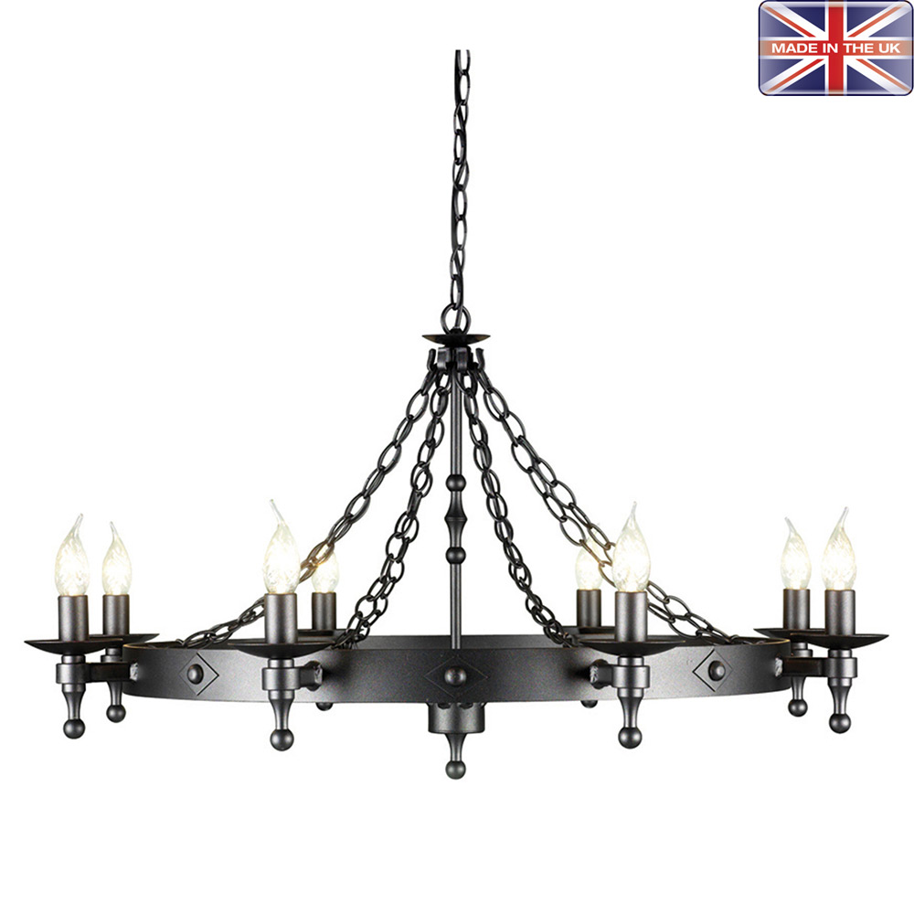 Kattokruunu antiikinajan tyyliin. Tämä laadukas käsityönä Englannissa valmistettu taottu kruunu sopii hienosti mm. viinikellariin, kesäasunnolle, olohuoneeseen tai ravintolaan.