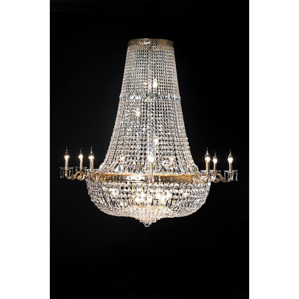 Upea kristalli kattokruunu suureenkin tilaan. Kuvan kristallikruunussa on 30% lyijykristallit ja runko on päällystetty 24k kullalla.
