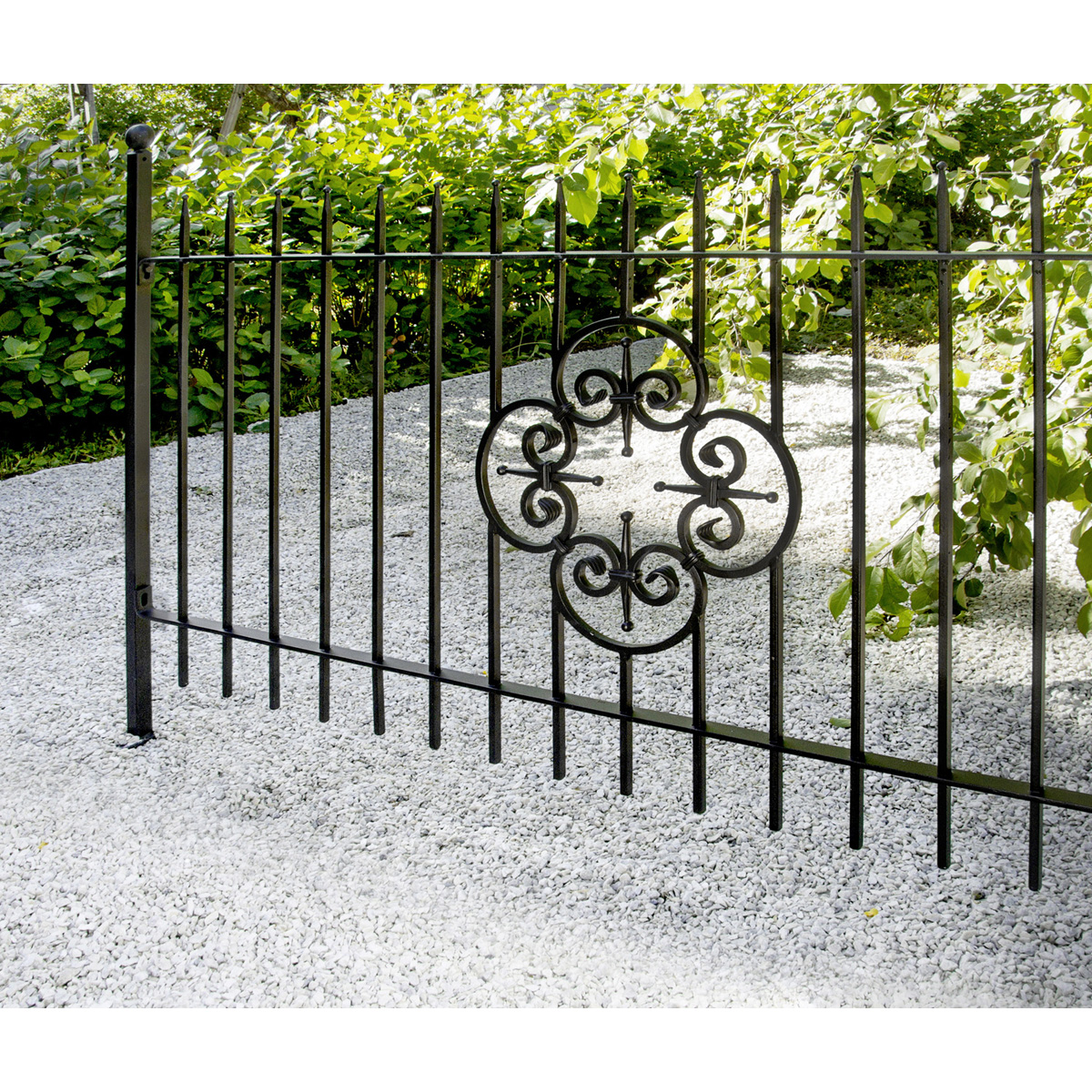 Laadukas ja edullinen metalliaita isolla koristeella. Tällä pitkäikäisellä aidalla rajaat pihasi helposti ja tyylikkäästi. Huoltovapaa aita kestää aikaa ja vaativiakin sääolosuhteita, kun se pintakäsitellään asianmukaisesti.