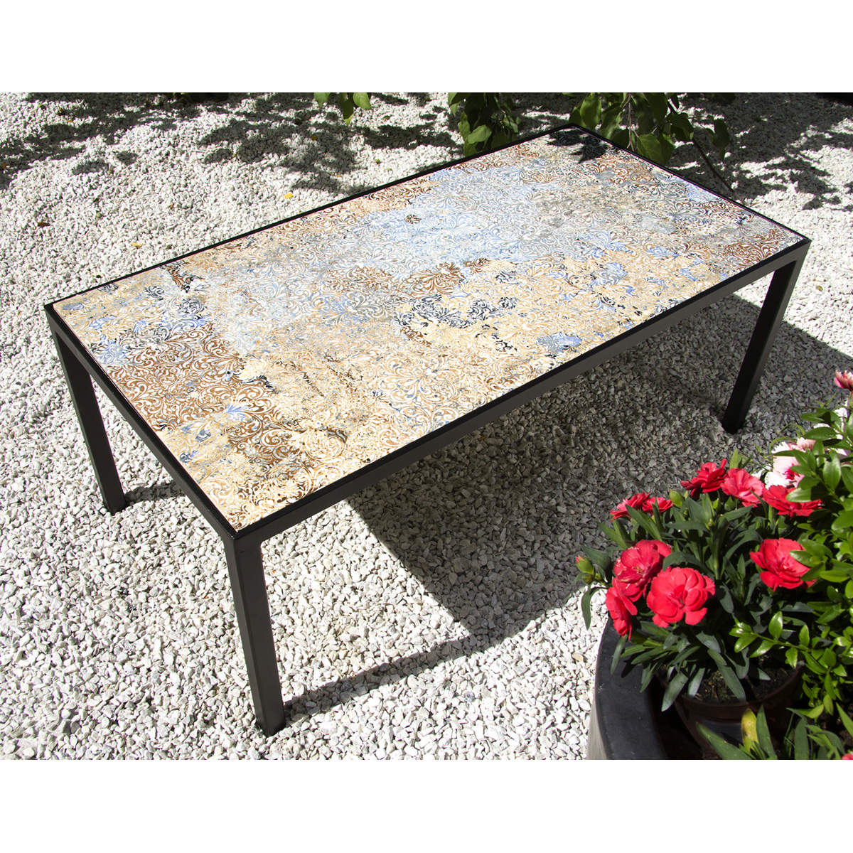 Materiaali: Maalattu teräs, kuvioitu keraaminen taso
