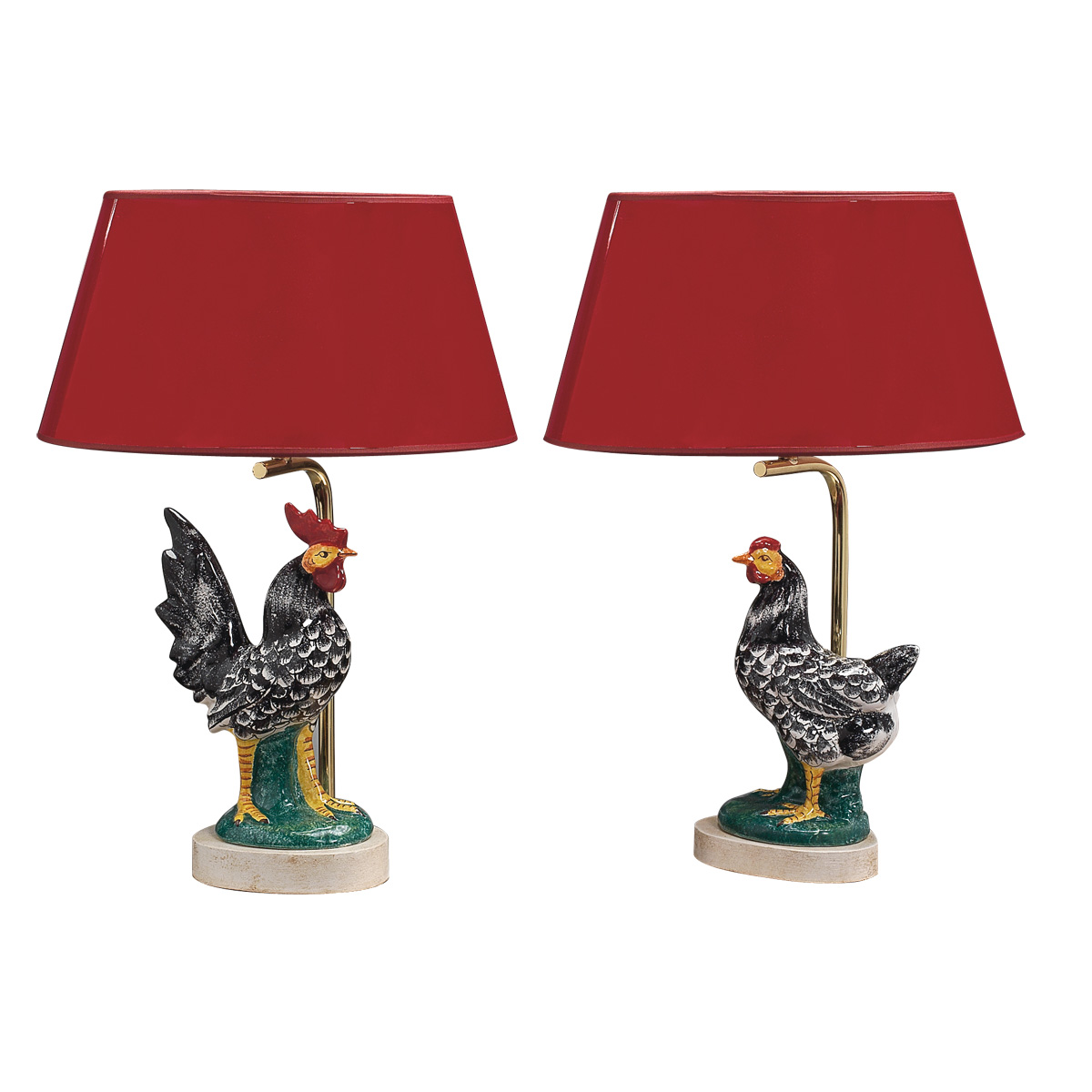 Hauskat pöytävalaisimet rohkealle sisustajalle. Valaisimessa on punainen varjostin ja jalkana joko kukko tai kana. Tämä ihastuttava persoonallinen pöytävalaisin on korkealaatuista italialaista designiä.