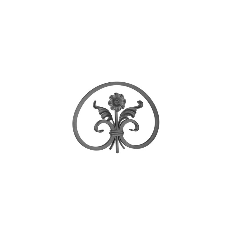 Takorautainen kukkakoriste, jossa kehyksen muoto on soikea ja koristeen keskellä on kukka ja lehdet. Tämä soikea kukkakoriste voidaan hitsata esimerkiksi sängynpäätyyn, porttiin, aitaan tai puutarhassa käytettäviin rakenteisiin. Kaunis rautainen koristekukka soveltuu käytettäväksi myös sellaisenaan osana sisustusta, tyyli maalaisromanttinen.