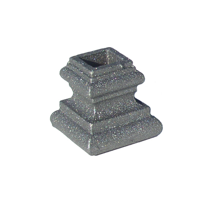 Teräsvalettu holkki nelikulmaisella 12,5 mm reiällä, hitsattavaksi kaiteen pystypinnojen juureen tai jaloiksi kalusteisiin.